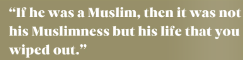 “... not a Muslim, not a friend, but a human that you killed. If he was a bastard, it was not his bastardry but just him that you had killed. If he was a Muslim, then it was not his Muslimness but his life that you wiped out.”