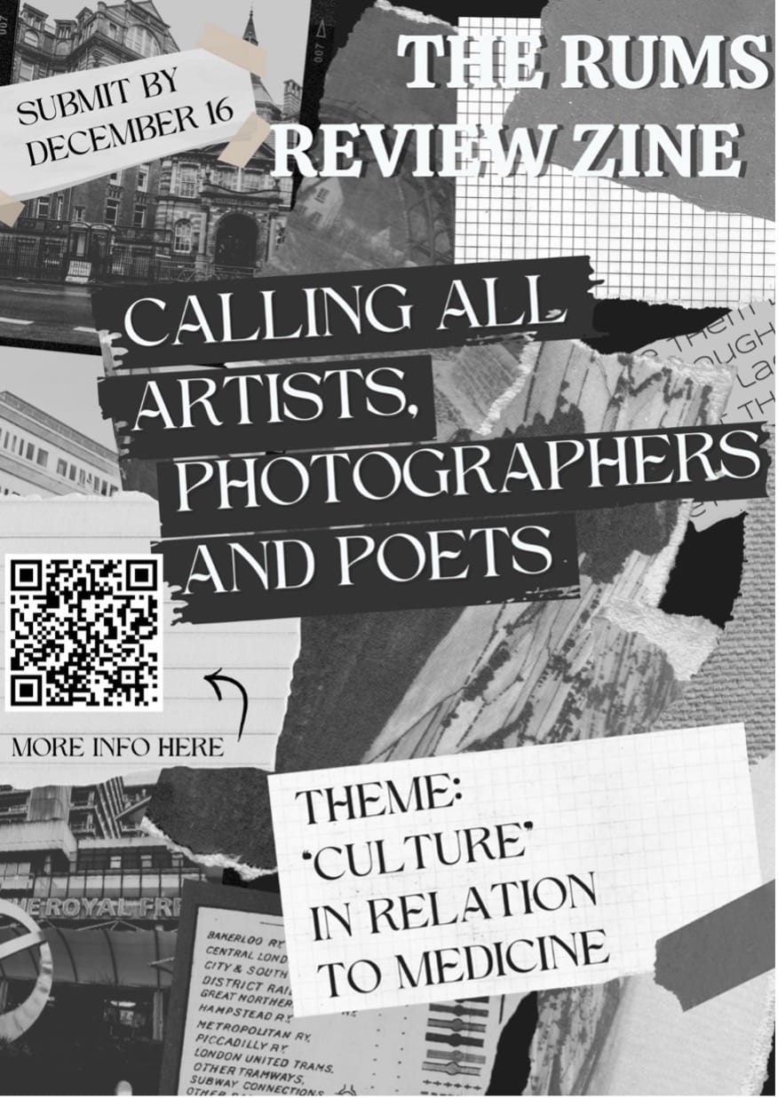 Here we will keep you updated on our magazine release dates, our events – speakers, workshops, magazine launches, collaborations with other societies – and opportunities to get involved with the RUMS Review, whether that be writing, editing, or designing.